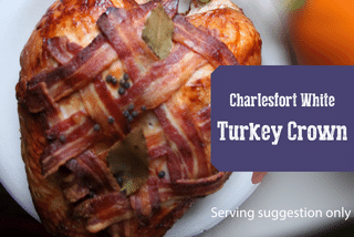 Fresh Irish Reared, Turkey Crown on the Bone . Product sold Fresh ( Raw), Bacon not included Serving Suggestion Only.